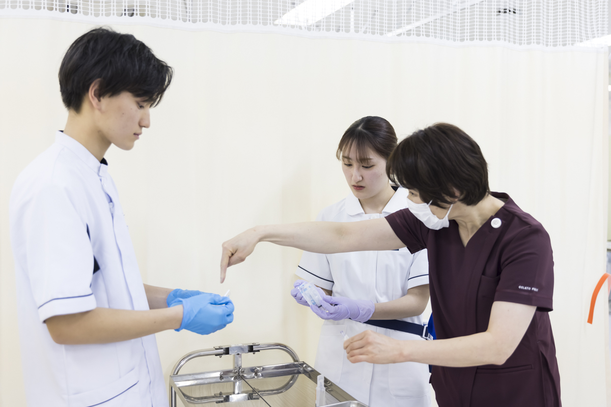 臨地実習は主として千葉県内の医療機関および地域の保健・看護・福祉機関、産業、教育機関等で行われます。1年次から現場における必要な知識を実践的に学び、4年次では自己の学習課題を明確にし、自主的で自立した実習を展開するとともに、看護チームの一員として必要な、看護実践能力の基盤を養う実習を行います。