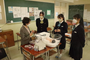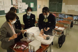 藤枝順心高等学校にて看護志望者を対象に出前授業を行いました。初めて学ぶことや初めて体験することも多く、参加した生徒さんは看護師の仕事への理解が深まり、目指す気持ちが強くなったのではないでしょうか。